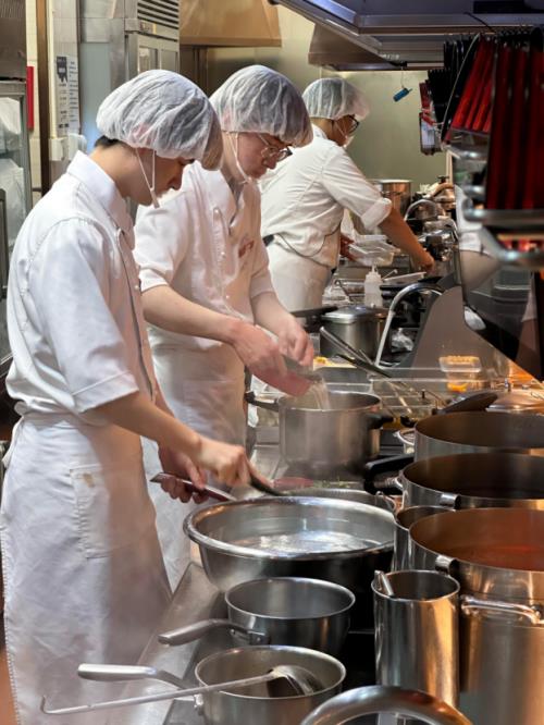 西贝起首对菜品制做流程动刀,焦点是让“风味构成的焦点环节回归门店”。十余道焦点菜品完成现制化:儿童餐牛肉酱改为现炒、牛肉饼现做、猪排烩酸菜现切现炒。最曲不雅的改变是羊肉串,从“地方厨房半成品”升级为“现切现穿现烤”,明档厨房里厨师的操做全程可见;鸡汤则改为“早上6点焚烧,晚上10点熄火”的慢熬工艺,从头找回保守烹调的炊火气。